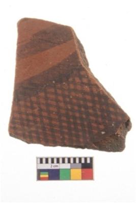 | Description / विवरण | Specimen of potsherd with black decorative geometric painting. |