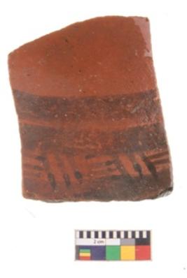 | Description / विवरण | Specimen of potsherd with black decorative geometric painting. |