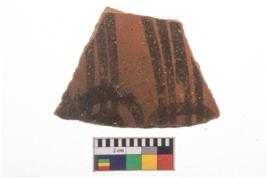 | Description / विवरण | Specimen of potsherd with black decorative geometric painting. |
