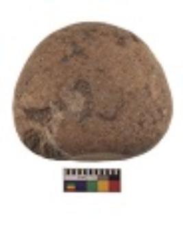 | Description / विवरण | Specimen of a hammerstone with battered periphery along with the circumference. |