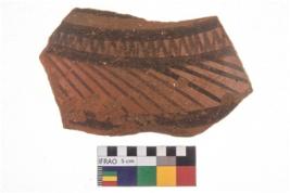 | Description / विवरण | Specimen of potsherd with black decorative geometric painting. |