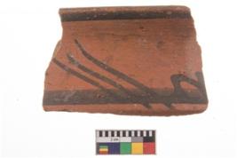 | Description / विवरण | Specimen of potsherd with black decorative geometric painting. |
