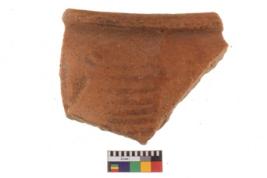 | Description / विवरण | Specimen of potsherd with decorative geometric painting. Type Black on Red Ware . |
