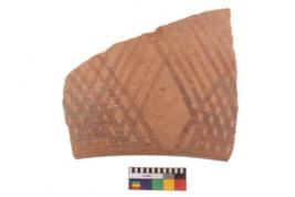 | Description / विवरण | Specimen of potsherd with decorative geometric painting. Type Black on Red Ware . |