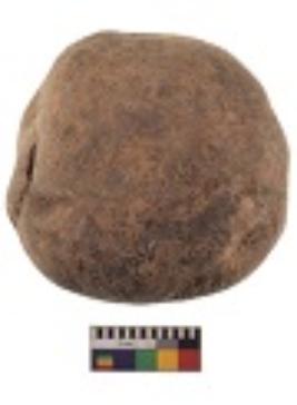 | Description / विवरण | Specimen of a hammerstone with battered periphery along with the circumference. |