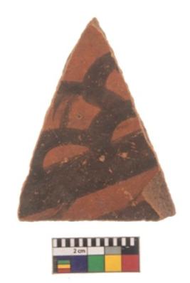| Description / विवरण | Specimen of potsherd with black decorative geometric painting. |