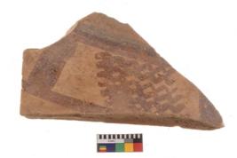 | Description / विवरण | Specimen of potsherd with decorative geometric painting. Type Black on Red Ware . |