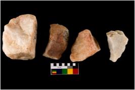 | Description / विवरण | Specimen of cores with weathered cortex and very few fluted marks. Most of them are uneven whereas some are tapering at one end. |