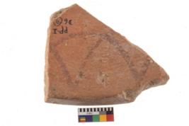 | Description / विवरण | Specimen of potsherd with decorative geometric painting. Type Black on Red Ware . |