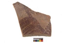 | Description / विवरण | Specimen of potsherd with decorative geometric painting. Type Black on Red Ware . |