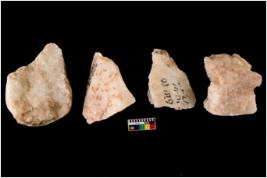 | Description / विवरण | Specimen of cores with weathered cortex and very few fluted marks. Most of them are uneven whereas some are tapering at one end. |