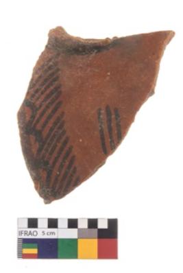 | Description / विवरण | Specimen of potsherd with black decorative geometric painting. |