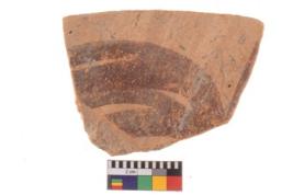 | Description / विवरण | Specimen of potsherd with decorative geometric painting. Type Black on Red Ware . |
