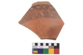 | Description / विवरण | Specimen of potsherd with black decorative geometric painting. |