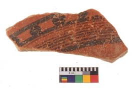 | Description / विवरण | Specimen of potsherd with decorative geometric painting. Type Black on Red Ware . |