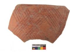 | Description / विवरण | Specimen of potsherd with decorative geometric painting. Type Black on Red Ware . |