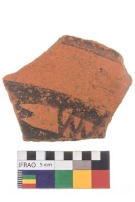 | Description / विवरण | Specimen of potsherd with black decorative geometric painting. |