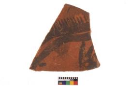 | Description / विवरण | Specimen of potsherd with decorative geometric painting. Type Black on Red Ware . |