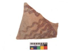 | Description / विवरण | Specimen of potsherd with decorative geometric painting. Type Black on Red Ware . |