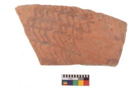 | Description / विवरण | Specimen of potsherd with decorative geometric painting. Type Black on Red Ware . |
