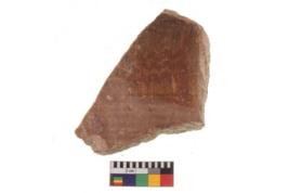 | Description / विवरण | Specimen of potsherd with decorative geometric painting. Type Black on Red Ware . |