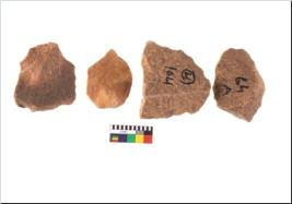 | Description / विवरण | Specimen of flake tool with prominent flaking marks. They are made up of a short flakes with sides trimmed. And are rectangular in shape. |