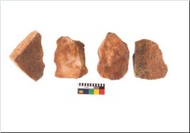 | Description / विवरण | Specimen of flake tool with prominent flaking marks. They are made up of a short flakes with sides trimmed. |