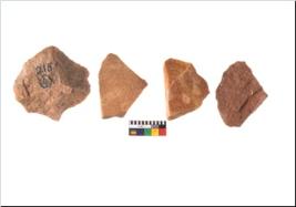 | Description / विवरण | Specimen of flake tool with prominent flaking marks. They are made up of a short flakes with sides trimmed. |