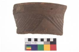 | Description / विवरण | Specimen of potsherd with black decorative geometric painting. |