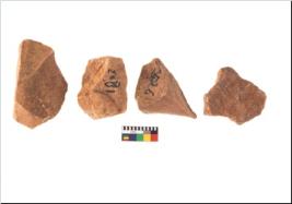 | Description / विवरण | Specimen of flake tool with prominent flaking marks. They are made up of a short flakes with sides trimmed. |