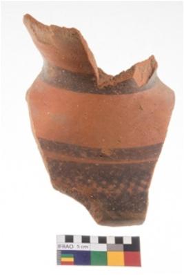 | Description / विवरण | Specimen of potsherd with black decorative geometric painting. |