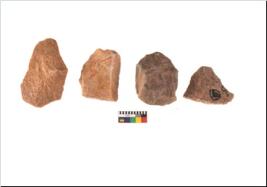 | Description / विवरण | Specimen of flake tool with prominent flaking marks. They are made up of a short flakes with sides trimmed. |