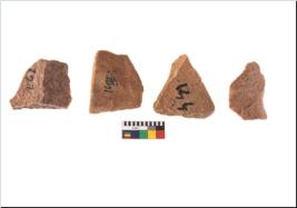 | Description / विवरण | Specimen of flake tool with prominent flaking marks. They are made up of a short flakes with sides trimmed. |