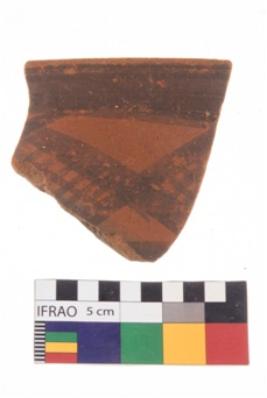 | Description / विवरण | Specimen of potsherd with black decorative geometric painting. |