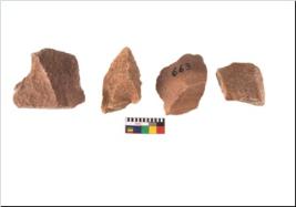 | Description / विवरण | Specimen of flake tool with prominent flaking marks. They are made up of a short flakes with sides trimmed. |