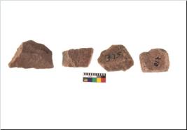| Description / विवरण | Specimen of flake tool with prominent flaking marks. They are made up of a short flakes with sides trimmed. |