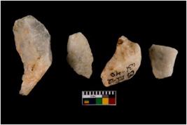| Description / विवरण | Specimen of cores with weathered cortex and very few fluted marks. Most of them are uneven whereas some are tapering at one end. |