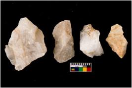 | Description / विवरण | Specimen of cores with weathered cortex and very few fluted marks. Most of them are uneven whereas some are tapering at one end. |