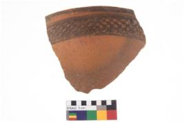 | Description / विवरण | Specimen of potsherd with black decorative geometric painting. |