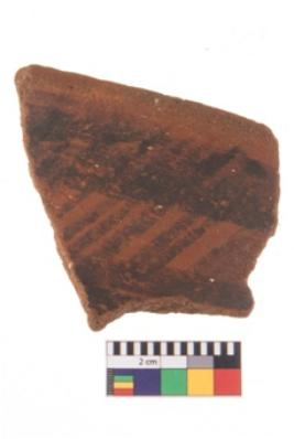 | Description / विवरण | Specimen of potsherd with black decorative geometric painting. |