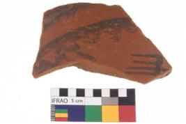 | Description / विवरण | Specimen of potsherd with black decorative geometric painting. |