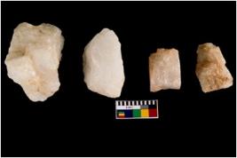 | Description / विवरण | Specimen of cores with weathered cortex and very few fluted marks. Most of them are uneven whereas some are tapering at one end. |