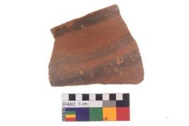 | Description / विवरण | Specimen of potsherd black on red painted pottery. It is fine fabric in sharp contrast with painted design are executed in black pigment. |