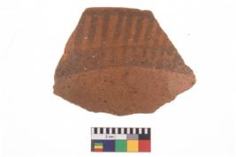 | Description / विवरण | Specimen of potsherd with black decorative geometric painting. |