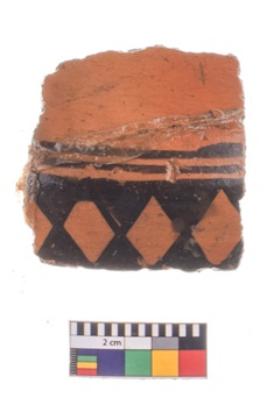 | Description / विवरण | Specimen of potsherd with black decorative geometric painting. |