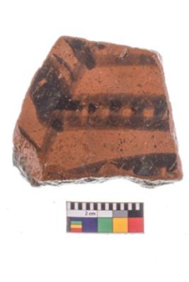 | Description / विवरण | Specimen of potsherd with black decorative geometric painting. |