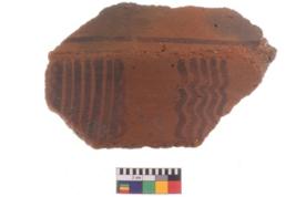 | Description / विवरण | Specimen of potsherd with black decorative geometric painting. |