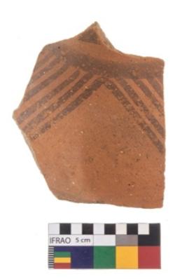 | Description / विवरण | Specimen of potsherd with black decorative geometric painting. |