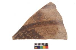 | Description / विवरण | Specimen of potsherd with decorative geometric painting. Type Black on Red Ware . |