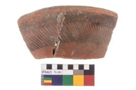 | Description / विवरण | Specimen of potsherd with black decorative linear painting. |